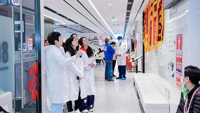 “原来现在的牙科治疗已经这么智能化了!”活动伊始,新生们分组走进门诊、数字化影像中心、消毒供应中心等核心区域,近距离观摩现代化口腔专科医院的运作流程。