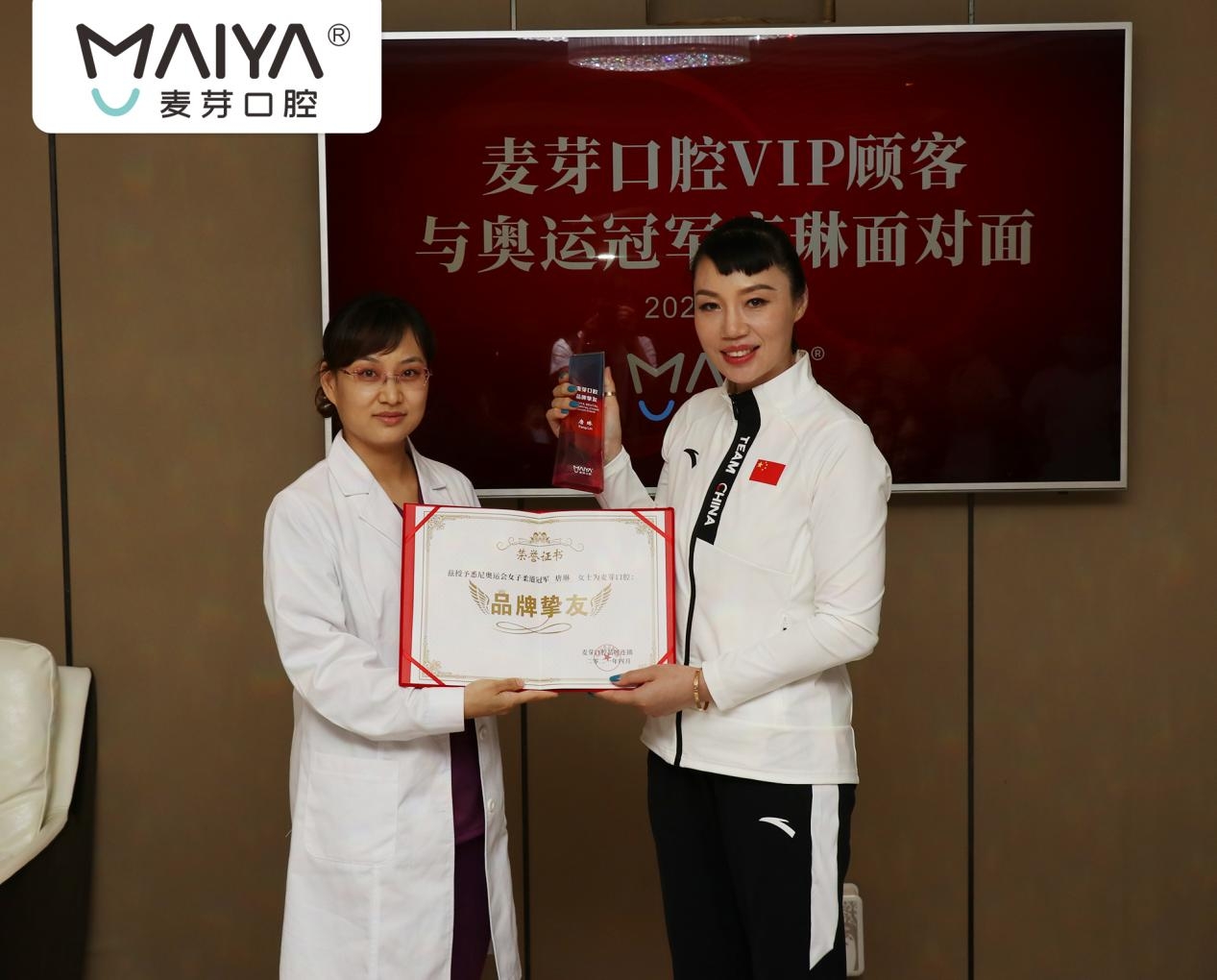 本次来到麦芽口腔,除了参观和体验奥运冠军口腔健康管理基地之外,唐琳还受邀成为麦芽的公益大使和品牌挚友。唐琳接过聘书后感慨:“我个人非常愿意和麦芽口腔携手做口腔健康宣教的公益项目,希望通过大家的努力,共同推动口腔健康的预防与治疗。”