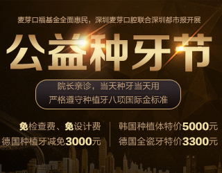 麦芽口腔自成立以来,一直以市民的口福健康为己任,热衷于举办各种公益活动,走进近200个社区开展口腔检查健康公益行,慰问养老院及拓黄牛,帮市民检查身体,定期开展口腔健康知识讲座,普及口腔知识。现已为数千人重拾口福健康,得到市民的认可和点赞,麦芽口腔的公益活动还将持续进行中,麦芽公益种牙节限时惠民,1000个公益种牙名额等你来抢!